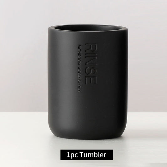 Bathroom Accessories Soap Lotion Dispenser Toothbrush Holder Soap Dish Tumbler Pump Bottle Cup Wood Black or White
